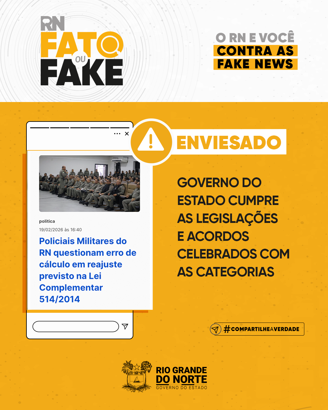 A Secretaria Estadual da Administração (Sead), a respeito de notícia veiculada em um blog local sobre um suposto “erro” na metodologia usada para calcular o reajuste de Policiais Militares do RN, informou que o Governo do Estado, na atual gestão, “cumpre rigorosamente as legislações e acordos celebrados com as categorias”.